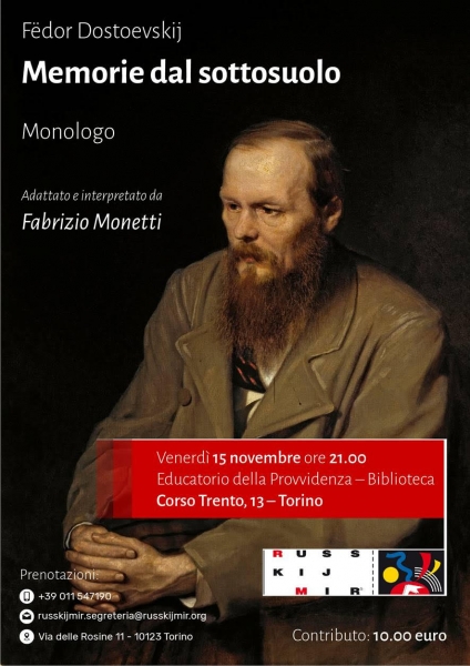 Fabrizio Monetti interpreterà un monologo tratto da "Memorie dal sottosuolo" di F. Dostoevskij.
